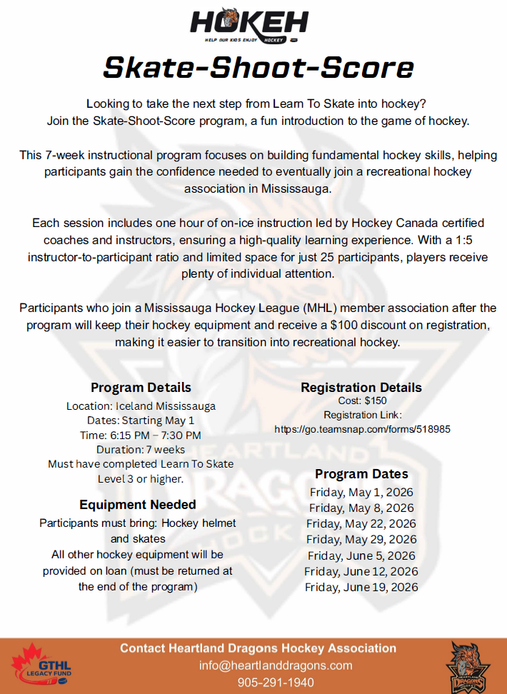 Contact Heartland Dragon Hockey Association TODAY! 905-291-1940 info@heartlanddragons.com